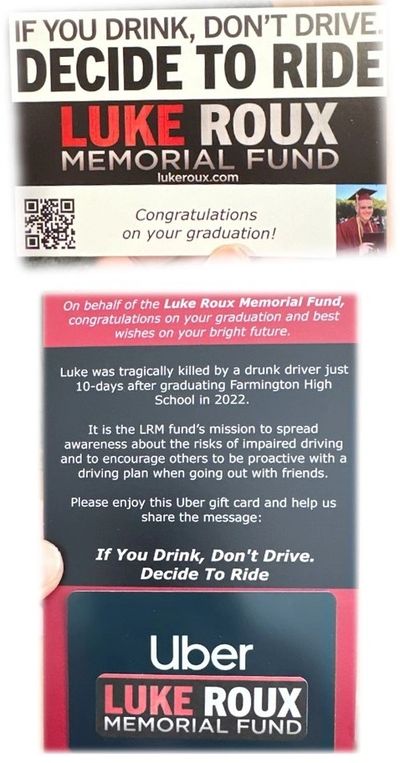 The Foundation also introduced the SafeGrad SafeRide initiative—each graduating senior will receive a rideshare gift at graduation, made possible by the Luke Roux Foundation. The message was simple: If and when you ever choose to drink, be proactive. Never drive impaired. Always have a safe way home planned before that first drink.